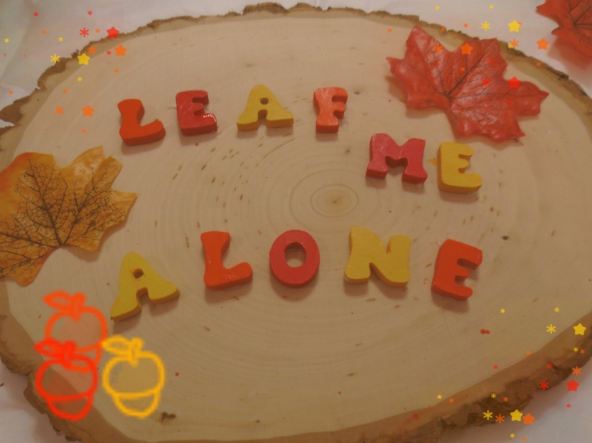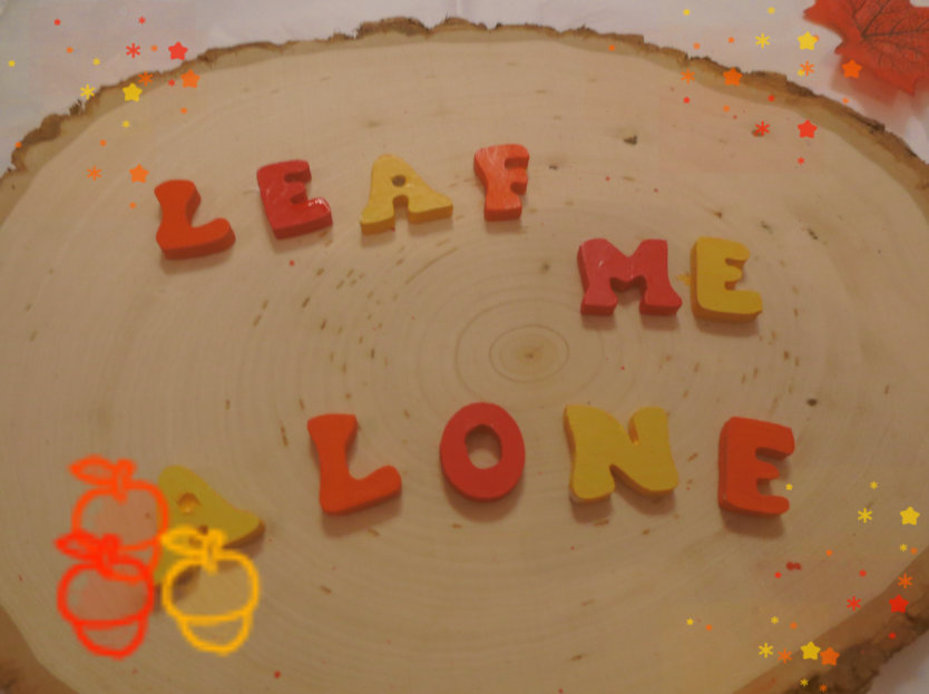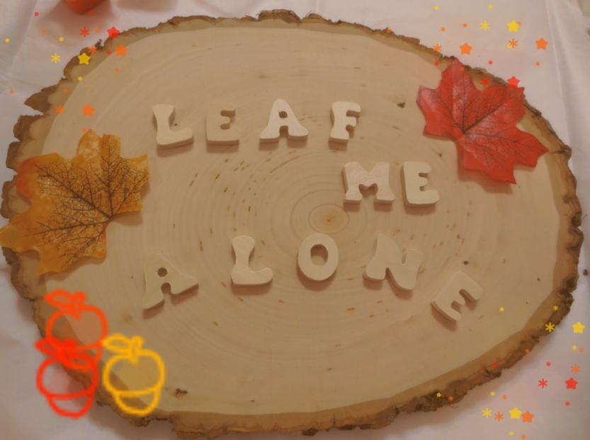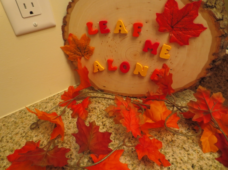 Put your fall scraps where you think they might look appealing. I suggest, besides Leaf me Alone, phrases like "Pumpkin spice this ass" or "Leaves are falling like the economy."